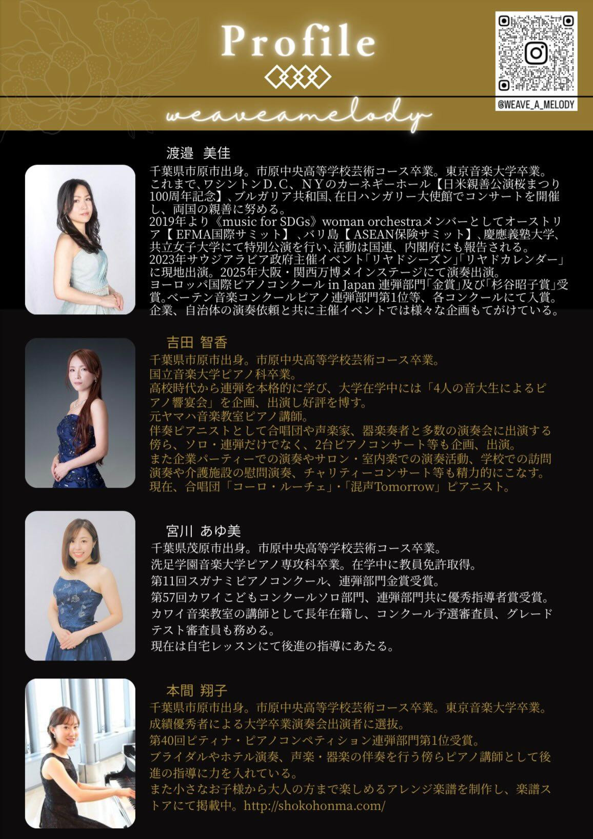 昨年のコンサート weave a melody vol.1 でも演奏していただいた方々が出演されます。